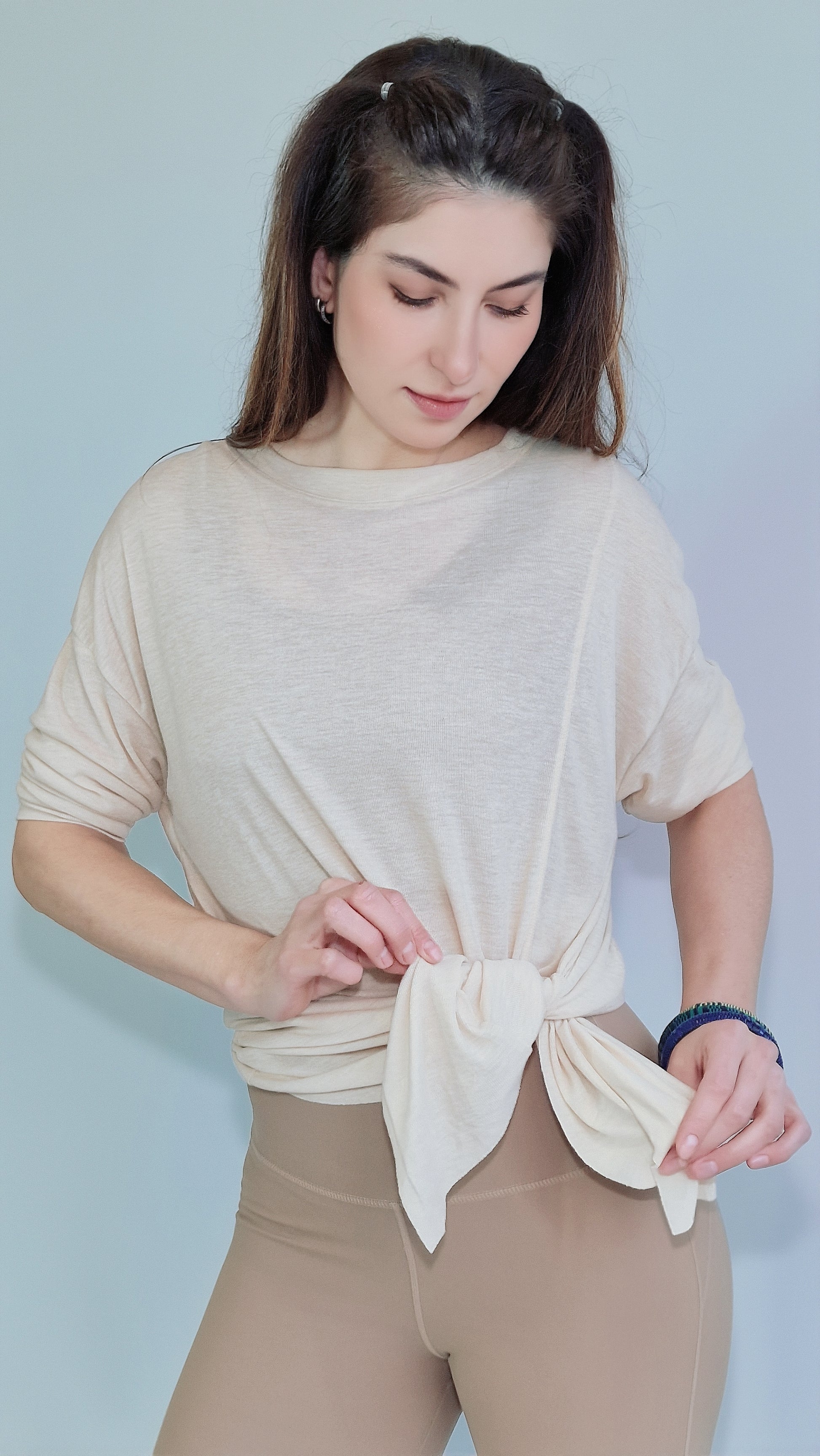 Blusa Comprida Fluida c Abertura Lateral Areia
