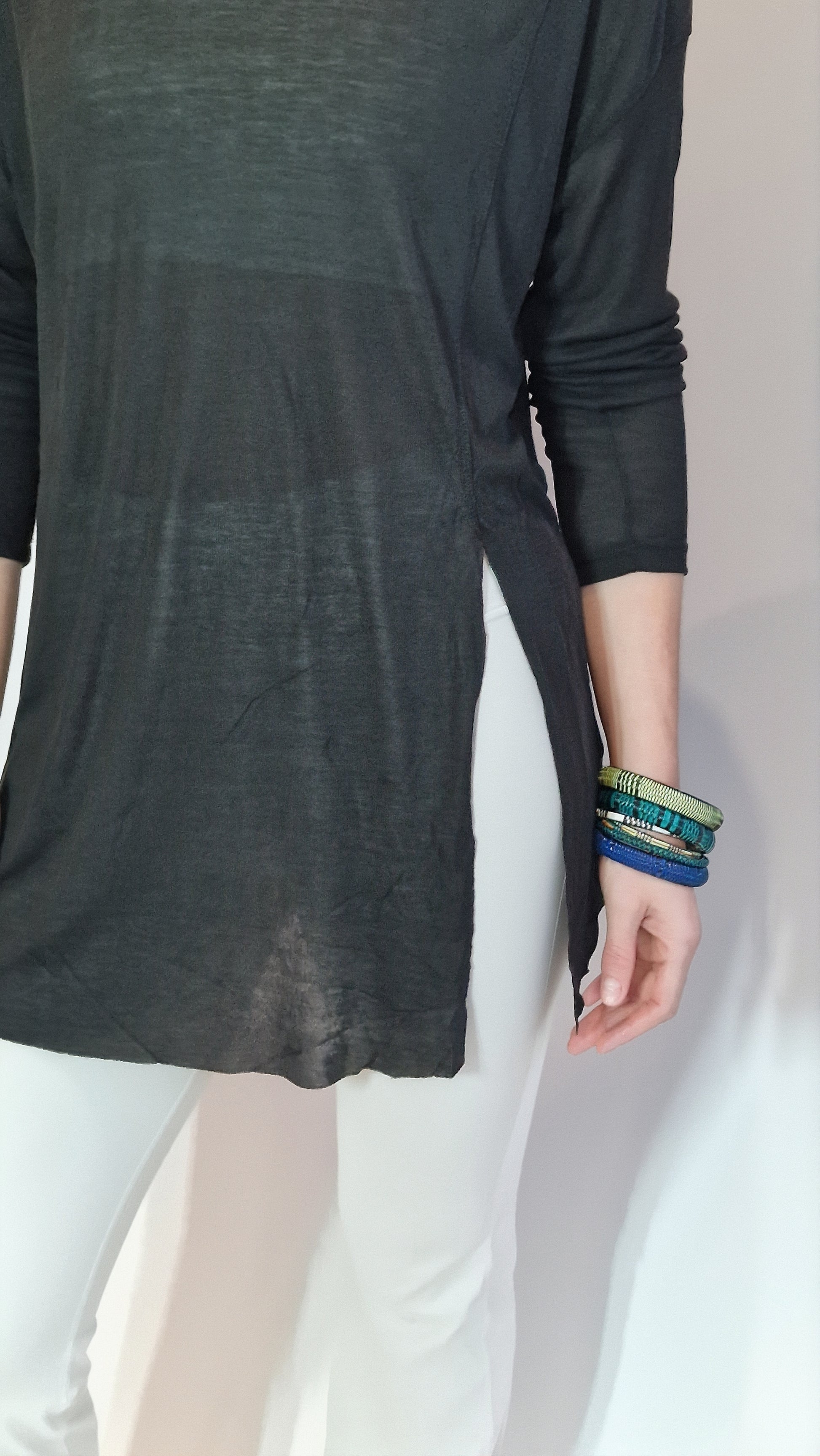 Blusa Comprida Fluida c Abertura Lateral Preto