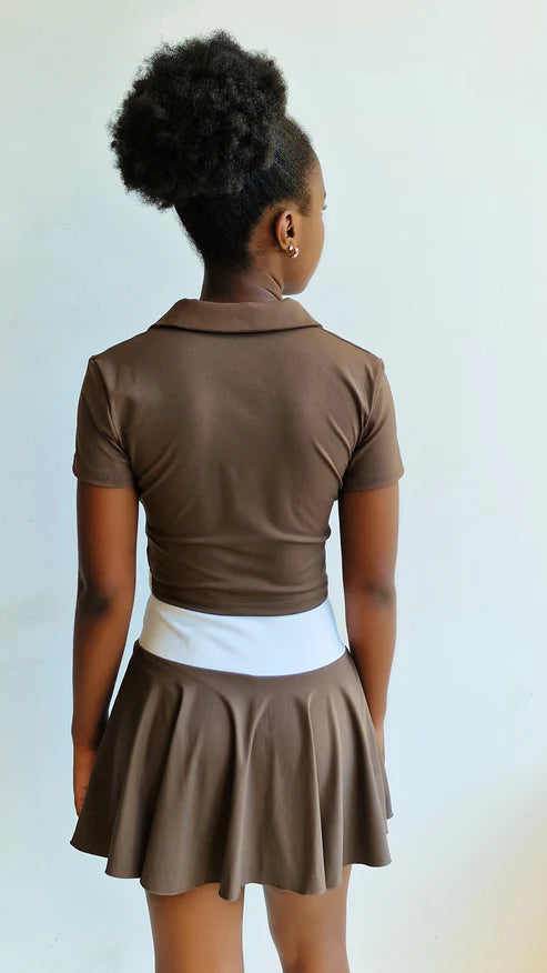 composto pela saia calção VEDA e POLO CROPPED FEMININO