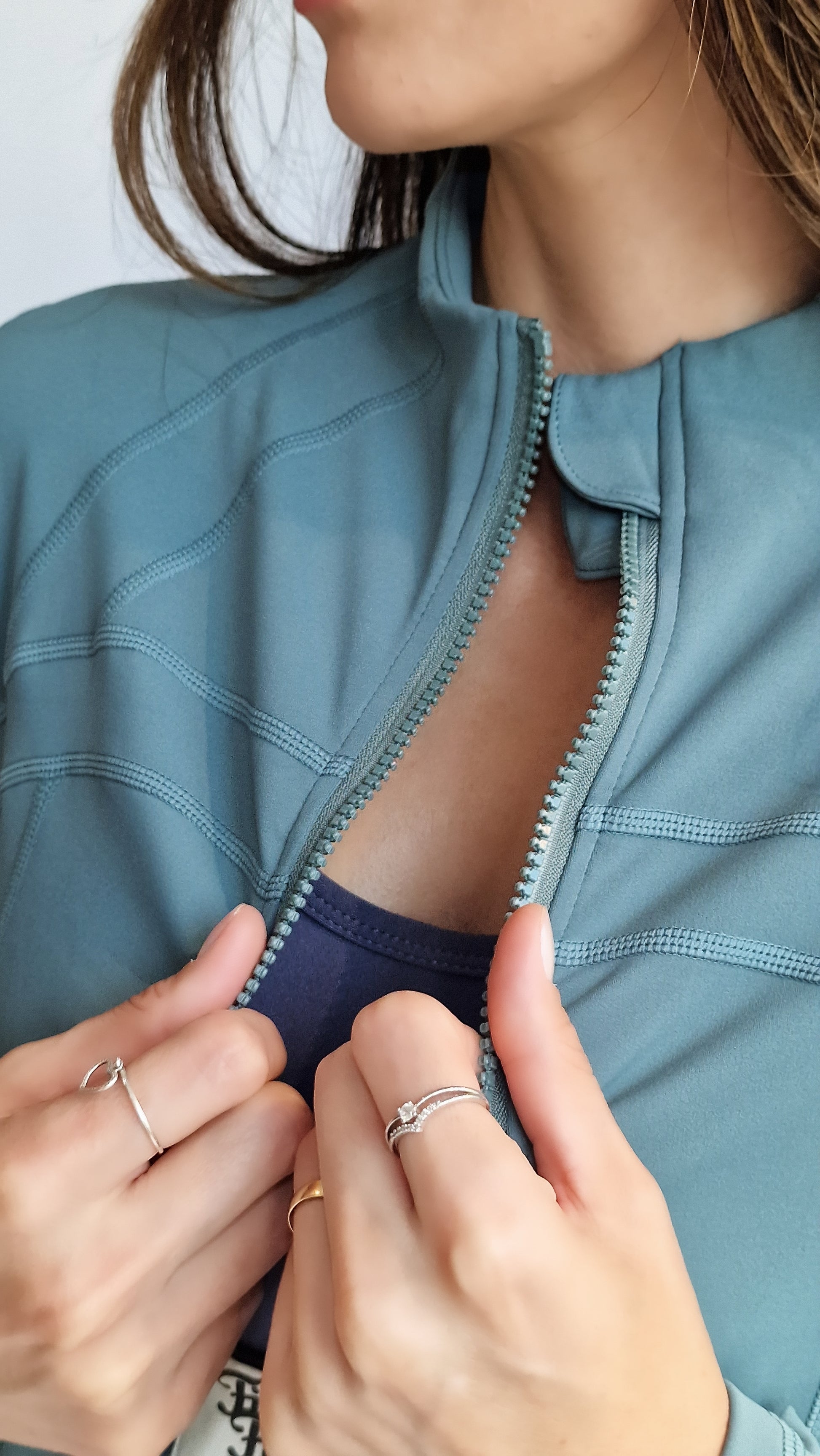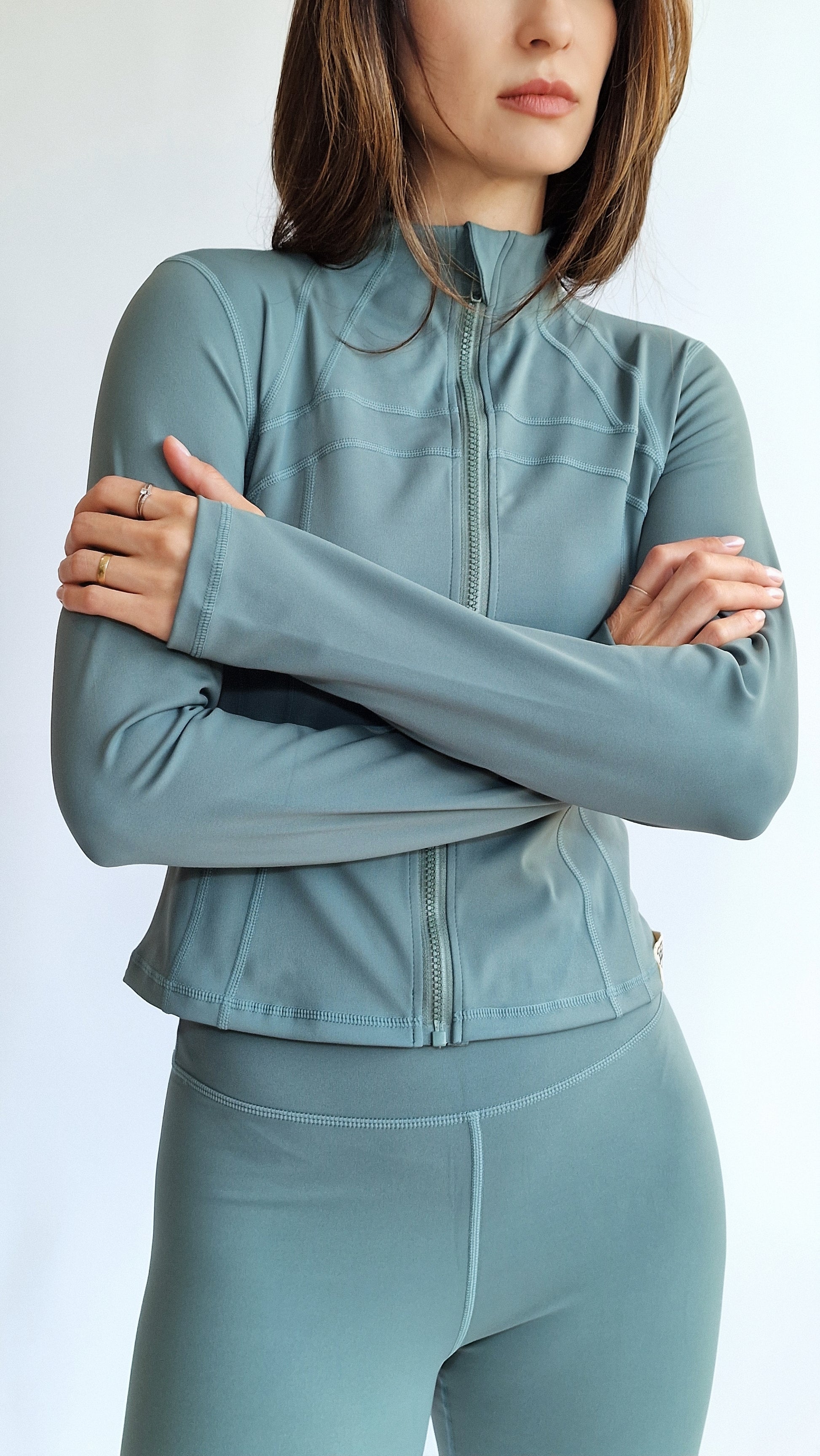 CASACO:• Gola subida com estrutura.• Fecho trator resistente e detalhe que cobre o cursor.• Corte justo e modelação que define a silhueta.Abertura no punho para o polegar• Tecido elástico e confortável.