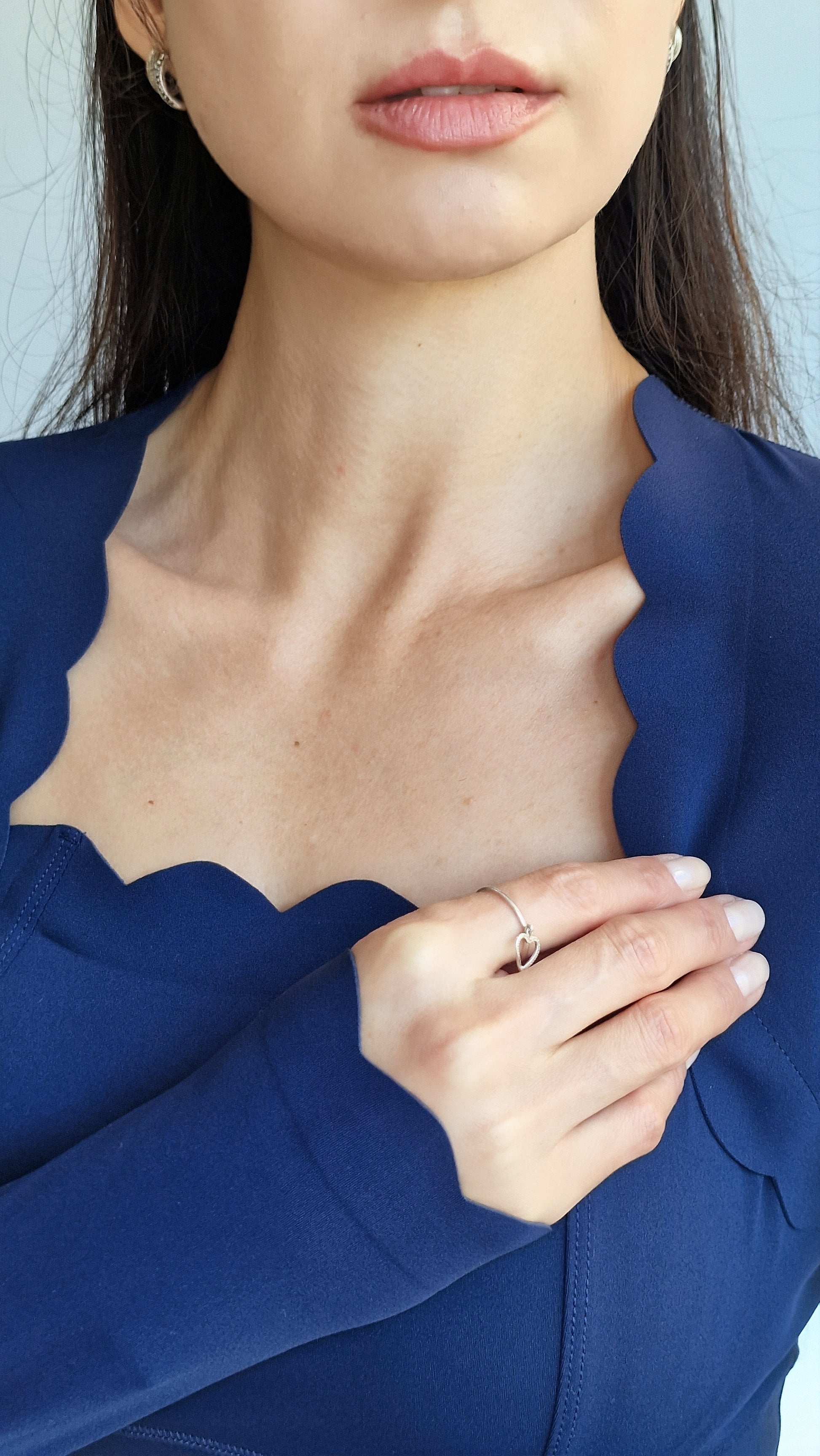 - Acabamento scallopado nas mangas e no contorno