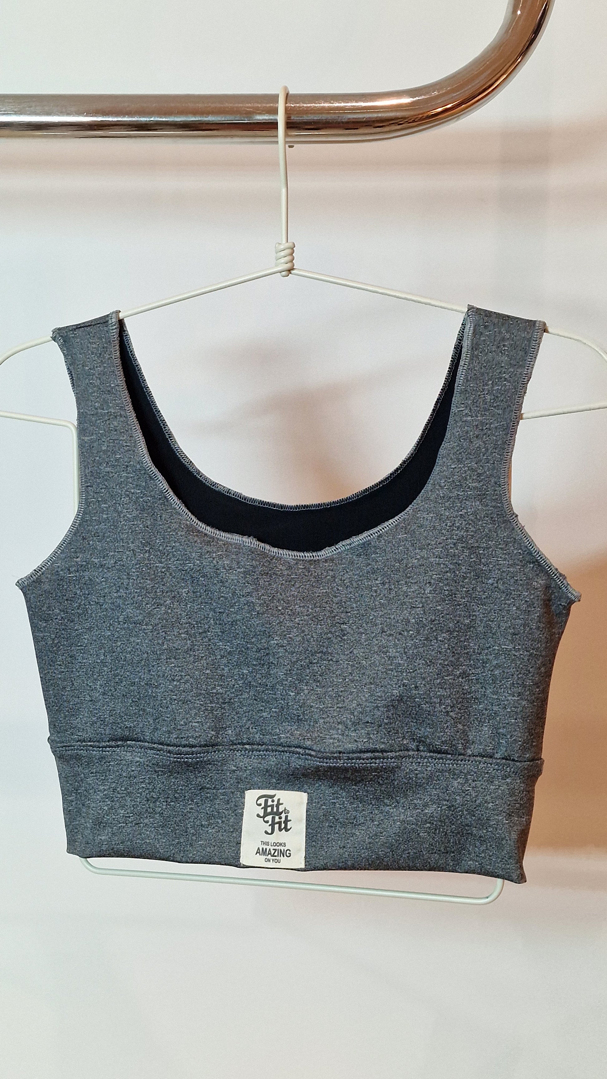 Top Decote Quadrado Cinza Mescla